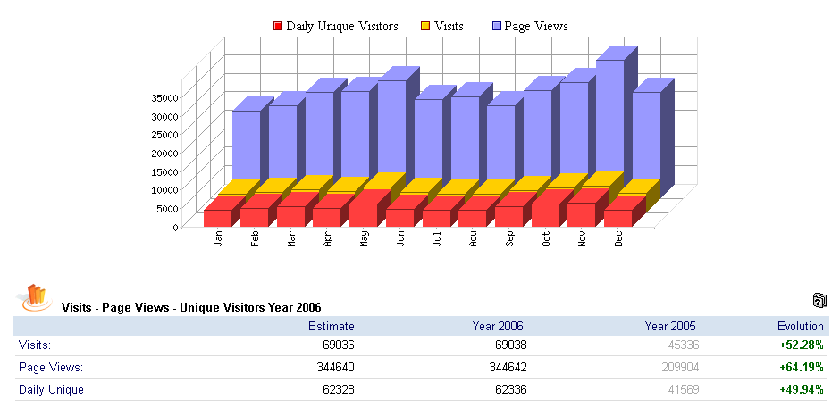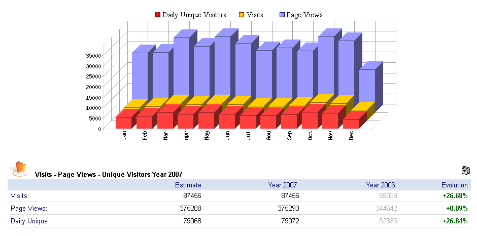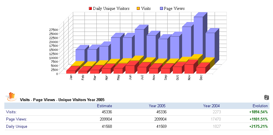 A partir de las estadísticas de Addfreestats se puede comprobar que una vez que la página se consolidó en los buscadores, y cuando el contenido de programación estaba al día, el ritmo de visitas fue durante años bastante bueno para tratarse de una página de este tipo y de este ámbito tan limitado.