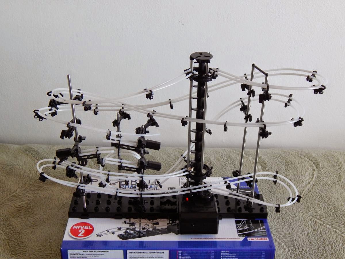 Una vez terminado todo, lo que queda es solo mirarlo. Enciendes el elevador y las bolas empiezan a rodar de forma perpetua, o hasta que se acabe la pila. El conjunto tiene un aspecto bastante robusto y se puede trasladar sin miedo a que se desarme. Otro artilugio más para ocupar sitio en casa.