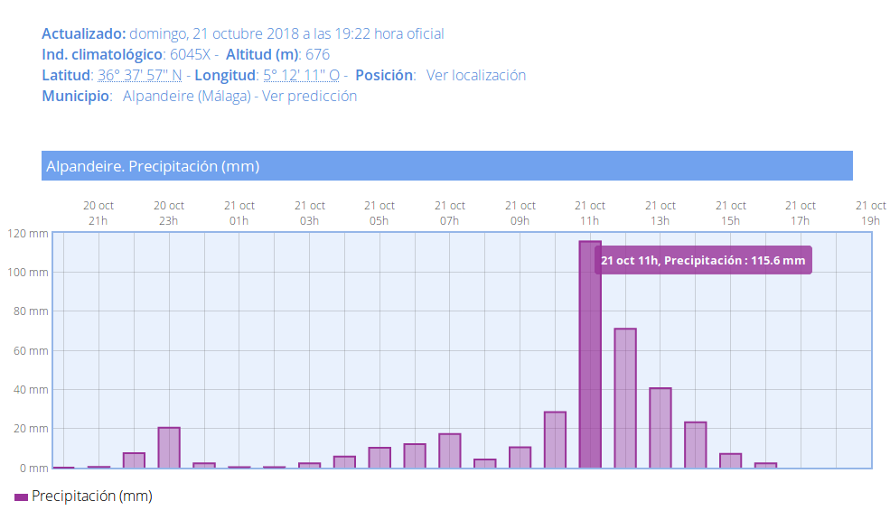 En otras poblaciones del Valle del Genal han llegado a recoger cantidades de lluvia mucho mayores. En Alpandeire o Pujerra ha habido horas donde han caído hasta 115 litros por metro cuadrado en una sola hora.