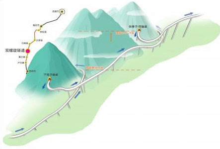 Situada en el centro sur de China en la ruta entre Chengdou y Kunmíng, la carretera también tiene que llegar a un puerto de montaña a gran altitud y la forma más práctica que han encontrado para conseguirlo es a base de túneles helicoidales para subir y puentes de retícula metálica para salvar grandes laderas y barrancos. Estos puentes son los más altos del mundo de esta clase.